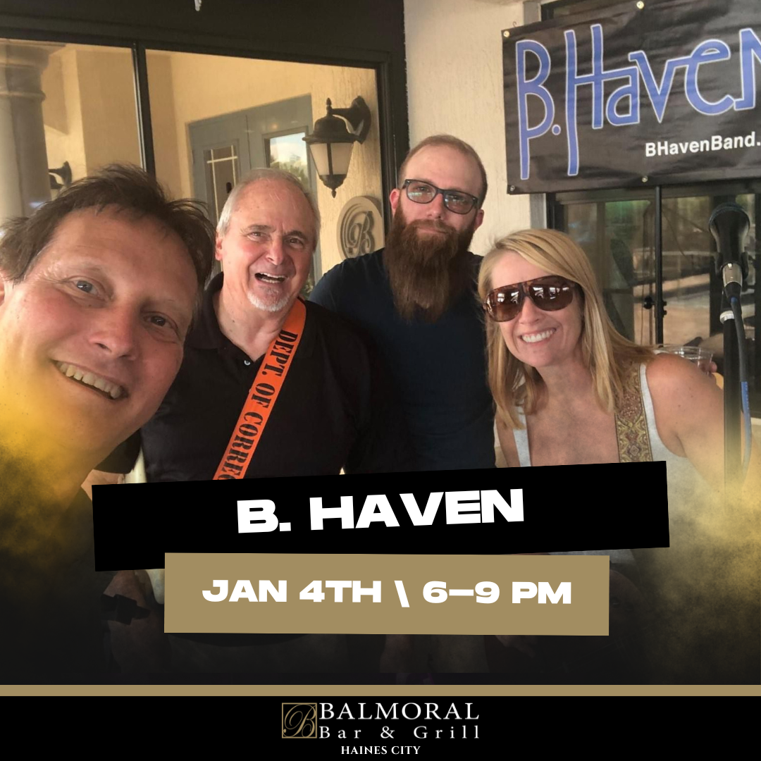 Kick off the new year with the ultimate party vibes! B.Haven, Central Florida’s top party band from Winter Haven, is bringing their electrifying live show to Balmoral Bar & Grill on January 4th!