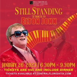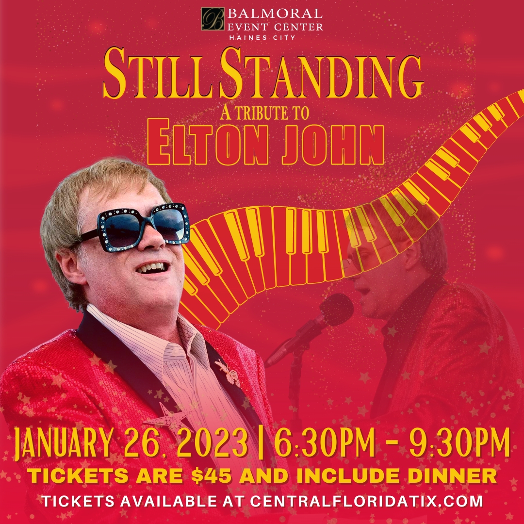 STILL STANDING carries on the legacy and amazing music of the iconic Sir Elton John. Close your eyes, and you will swear you are listening to Elton in person as the amazing Ben Frey looks, sounds, and performs his incredible music catalog to perfection! Expect ALL of the huge hits including: Candle in the Wind, Rocket Man, Bennie & the Jets, Tiny Dancer, Your Song, Circle of Life, and Crocodile Rock among many others!