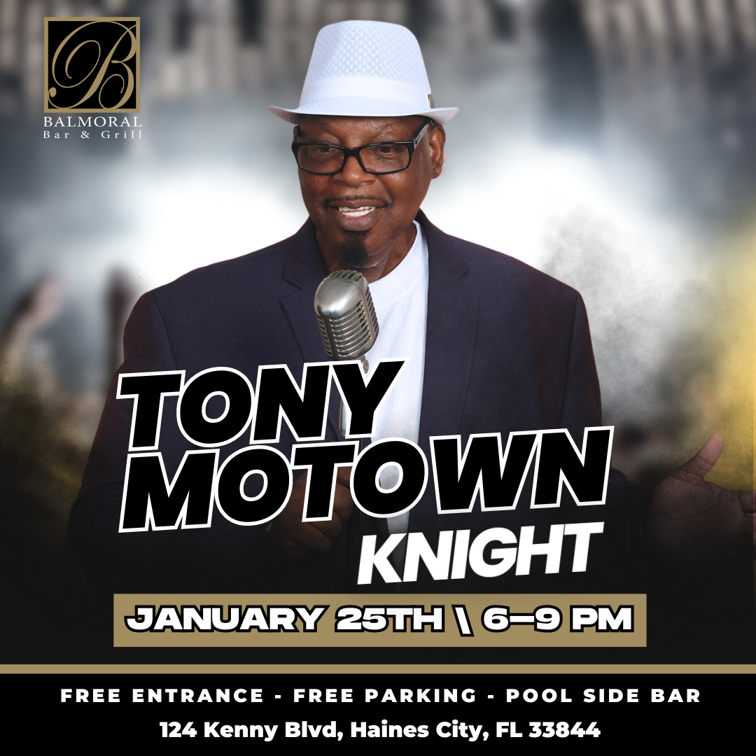 We are so excited to have popular performer Tony “Motown” Knight returning to Haines City’s live music venue to do what he does best — entertain a crowd.